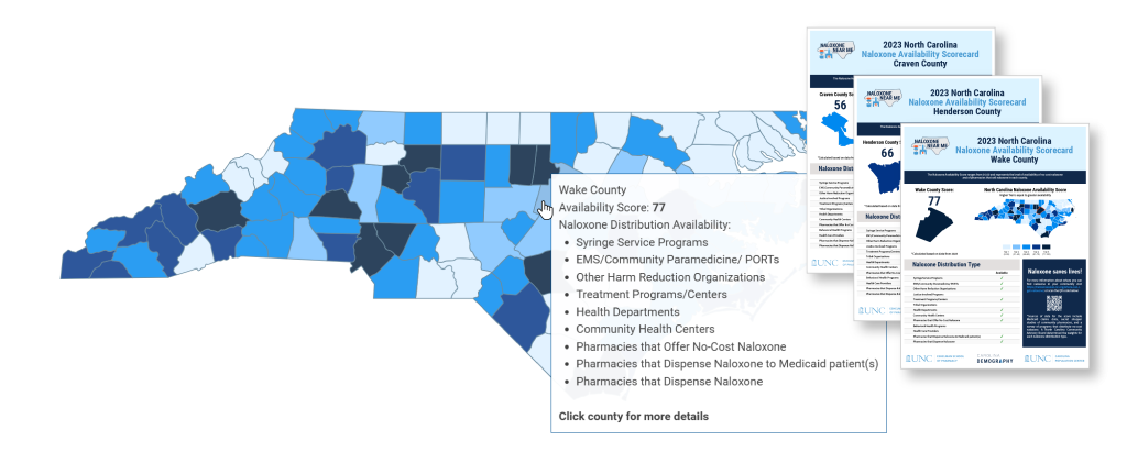 Naloxone is a highly effective medication for reversing opioid overdoses. There are multiple sources of naloxone in each county, including no-cost sources and pharmacies, but people often do not know where to find it. The goal of this website is to inform the public about what sources of naloxone are available in their county. For counties with lower availability, the scorecard can be used to help inform decisions about what sources could be enhanced or added to improve naloxone availability.